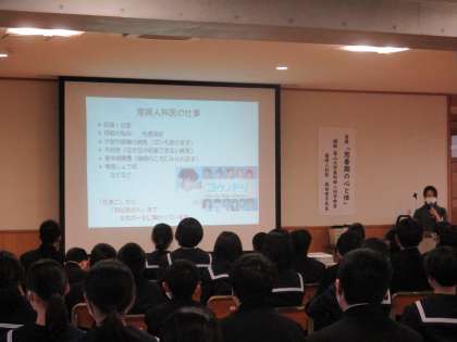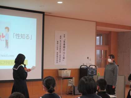 富山大学産婦人教室の産婦人科医森田恵子先生による「思春期の心と体」について講話していただきました。思春期を迎え体や心の変化する時期に適切に付き合っていく方法をわかりやすく教えていただきました。自己を見つめ、認め、コントロールし表現していきましょう。