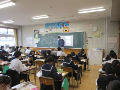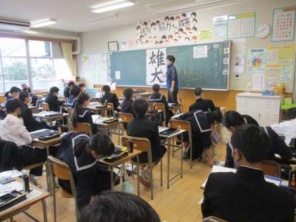 上は国語で、書き初め大会に向けて「雄大」の字の練習しています。
