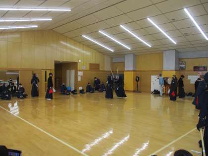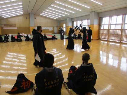 剣道部は、他校を招いて、真剣な空気の中で、早速練習試合をしています。