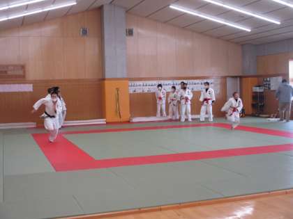 柔道部では、下半身と瞬発力を鍛えるためにダッシュを練習に取り入れています。