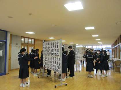 仕上がった作品は、早速廊下に掲示し、互いに鑑賞し合いました。