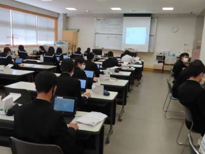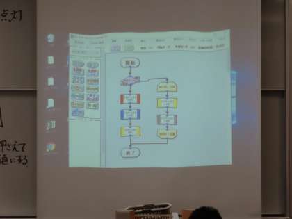 2学年の技術・家庭科 技術分野では、プログラミングLEDライトを使った、フローチャート型の簡易プログラ学習を進めています。今日は、条件分岐処理、反復(繰り返し)処理、順次処理のパターンを交えた信号機プログラムの作成を行いました。コンピュータ室は常に換気された状態で作業を進めています。