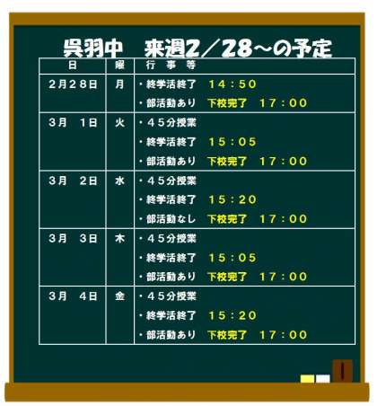 来週の予定2/28(月)〜