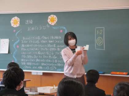 学活ではそれぞれの役割分担を話し合いや1年の抱負・目標を書きました。