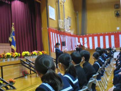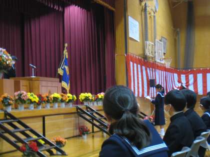 新入生代表生徒からは、誓いの言葉として、「聡明・勇気・友情」を胸に刻み、何事にも積極的に取り組み、中学校生活を充実したものにしていきたいという言葉がありました。