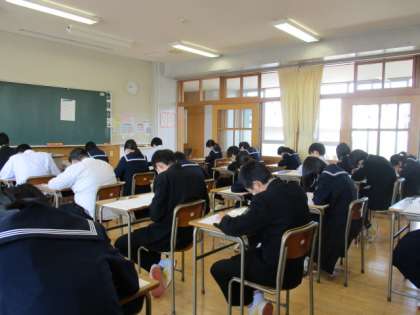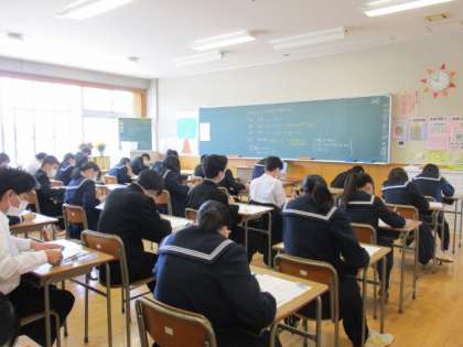 <写真>1限 社会、2限 数学、テストの休憩時間の様子