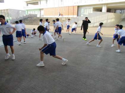 一年生が部活動の体験をしています。二、三年生に教わる一年生は、体育服でとても初々しいです。来週の25日にある部活動発会式で正式に一年生も部の一員となります。どれだけの新入部員が各部に入ってくるか、楽しみですね。