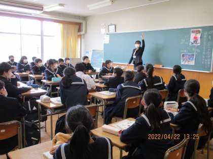 授業参観の様子です。たくさんの参観ありがとうございます。先生も、生徒もちょっと緊張気味!?