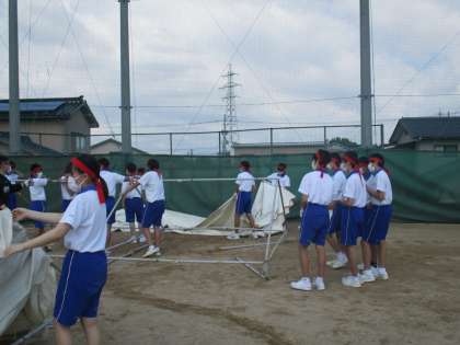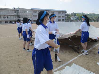 テント準備では、3年生全員が積極的に作業に取り組み、時間内に準備を終えることができました。今週は体育大会に向けて学年練習・団練習があります。3年生が積極的に活動し、協力してよりよい体育大会にしましょう。