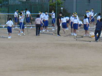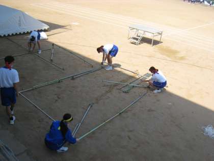 1限目には3年生で団テントや本部テントの設営を行いました。