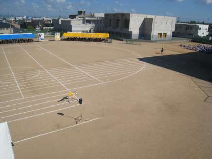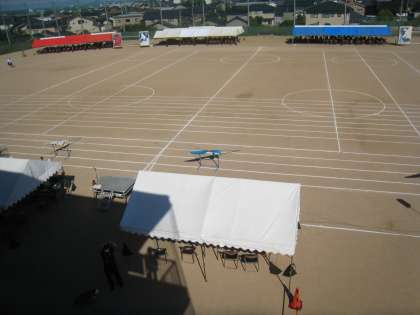 いよいよ体育大会当日になりました。朝早くから係生徒が登校し、開会に向けて準備を行いました。天候にも恵まれ、準備は順調に進みました。