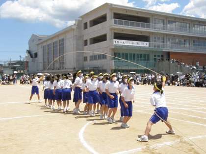 2年生の学年種目「みんなでジャンプです」各団で力を合わせ、制限時間内で跳べる回数を競いました。