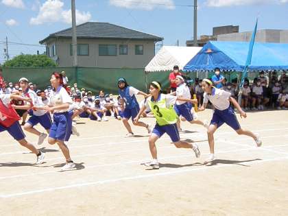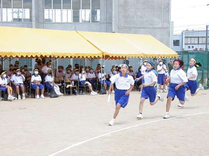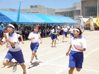400mリレーは各学年女子の代表選手による競技です。仲間の期待を担いながら一生懸命に走りました。