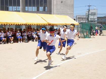 800mリレーは各団の男子選手による競技です。団席の期待を受けながら精一杯走りました。