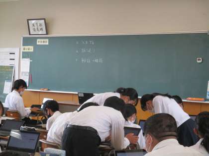 今日の学活では、オープンハイスクールのアンケートを行いました。夏には、大会を控えている部活動も多く、自分の希望校のオープンハイスクールと日程が重なっていないかどうかや体験授業の希望なども確認しました。私立高校は各自の申し込みなので、県立高校との日程も確認しつつ、進路希望を具体的にするためにも色々なことを経験してきてください。
