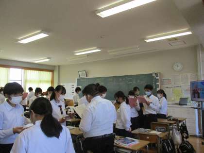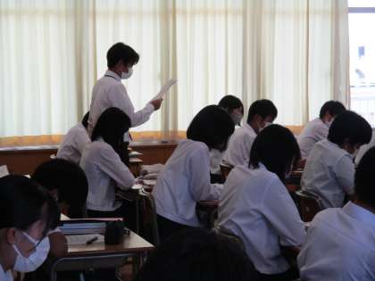週も後半になりました。勉強や進路への意識が高まってきており、授業中、背筋がぴーんとのびている人が多くなりました。3組では、教育実習の先生の授業がありました。この3週間で教育実習の先生と英語を楽しく学べました。