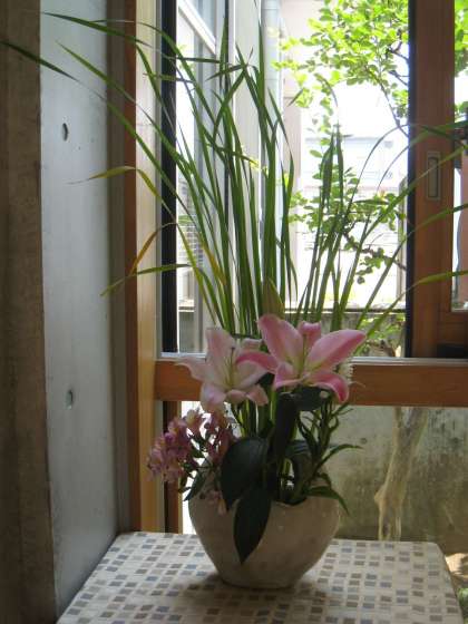 ありがとうございます。生徒玄関では百合の花が見事にひらきました。