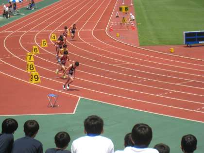 写真上は、陸上競技 男子800m スタートする選手を応援する様子です。