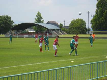 写真中、下は サッカー部の様子です。奥田中と対戦、4対1で勝利しました。