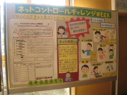 保健体育委員会では期末考査期間に合わせて「ネットコントロールチャレンジWEEK」を実施していました。自分で決めた内容にチャレンジして、自分の力でネット利用をコントロールする取り組みです。自分でコントロールして学習時間や睡眠時間が確保できたでしょうか?