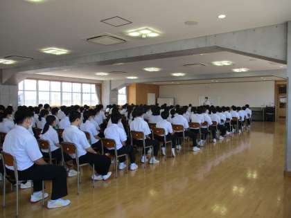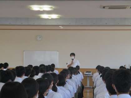 夏休みまであと2週間ほどとなりました。今年の夏をどのように過ごすかで進路のことも大きく変わってくるかと思います。今日の学年集会では、それぞれの先生方から部活動について、オープンハイスクールについて、そして学習についてお話がありました。今のうちから計画を立てて、実りある休みにしましょう。「継続は力なり」です。