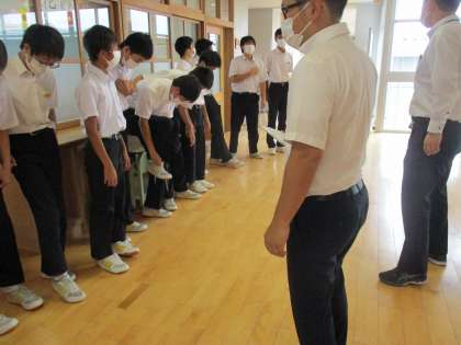 今日はさわやかチェックがありました。夏休みのオープンハイスクールや普段の学校生活をよりよく過ごすための服装点検です。身なりを整えることで周りによりよい印象をもってもらうことができ、自分自身の気を引き締めるためにも大切なことです。呉中生としての自覚をもって夏休みを過ごせるように服装から見直してみましょう。