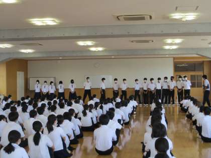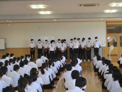 今日は、学年登校日でした。夏休みも半分くらいが終わろうとしています。コロナや暑さに負けじと、サッカー部、柔道部、剣道部女子、相撲部が全国大会にむけて頑張っています。学年一丸となって皆さんの活躍を応援しています。部活動に限らず、後悔のない夏休みになるよう後半も気を引き締めていきましょう。
