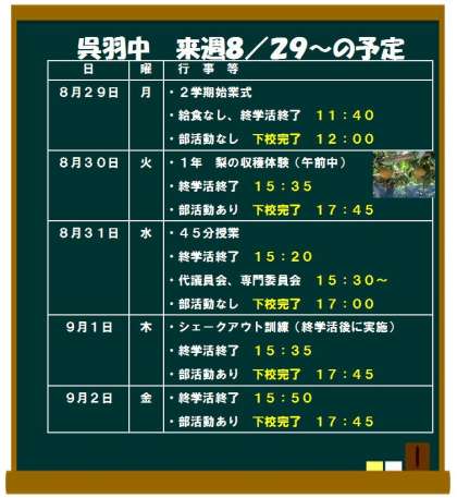 来週の予定8/29(月)〜