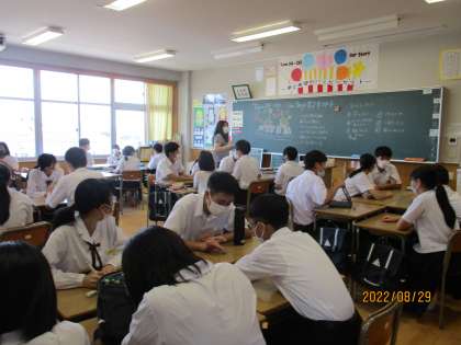 今日から2学期がスタートです。合唱コンクールや修学旅行に向けてクラスの絆を深めるために、夏休みの過ごし方や楽しかったことをサイコロやビンゴカードを使って話し合っているクラスもありました。明日からは授業も再開です。「今だからこそ」できることを大切に目標を持って頑張っていきましょう。