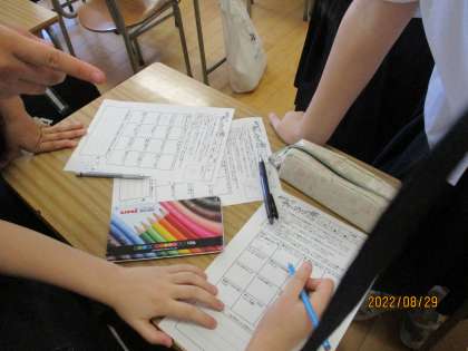 今日から2学期がスタートです。合唱コンクールや修学旅行に向けてクラスの絆を深めるために、夏休みの過ごし方や楽しかったことをサイコロやビンゴカードを使って話し合っているクラスもありました。明日からは授業も再開です。「今だからこそ」できることを大切に目標を持って頑張っていきましょう。
