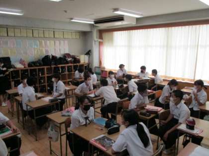 写真左:Small Talkに挑戦しました。I went to Hokkaido.のような英文も聞こえてきました。振り返りでは「自分の夏の思い出が伝わってうれしかった。友達の夏の思い出を聞き取れた。」との生徒のコメントがありました。