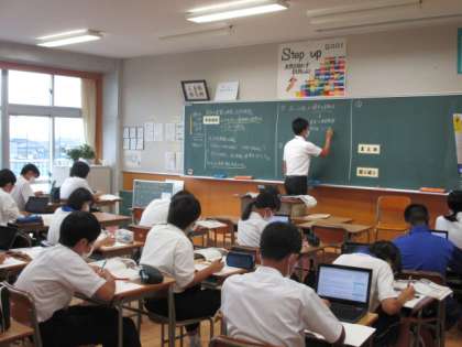 登校時間帯に大雨となりましたが、1限の授業に元気に取り組んでいます。