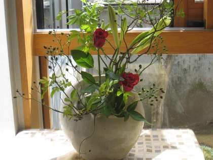 赤いバラ、白いユリ、黄色のガーベラ 花を見ていると、心が和みます。