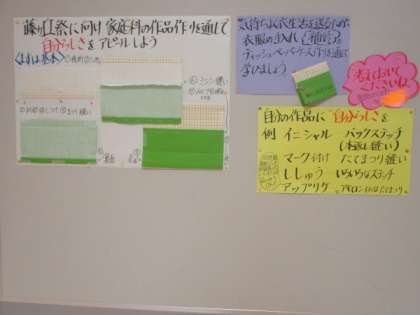 家庭科では、藤ヶ丘祭に向けて、作品づくりが始まっています。