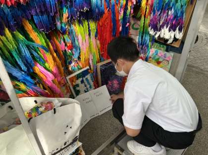 平和記念公園内を見学しています。