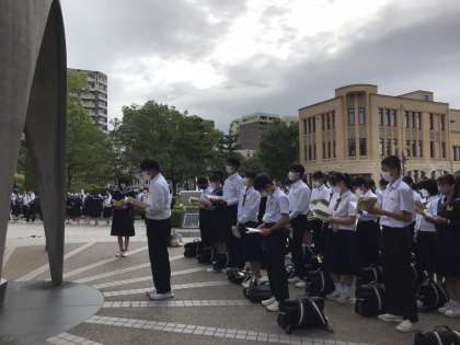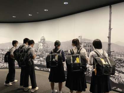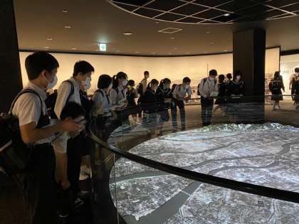平和セレモニーを行った後、平和記念資料館を見学しています。