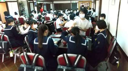 3年生は昼食会場に到着し、今から昼食です。しっかり食べて午後からもがんばりましょう。