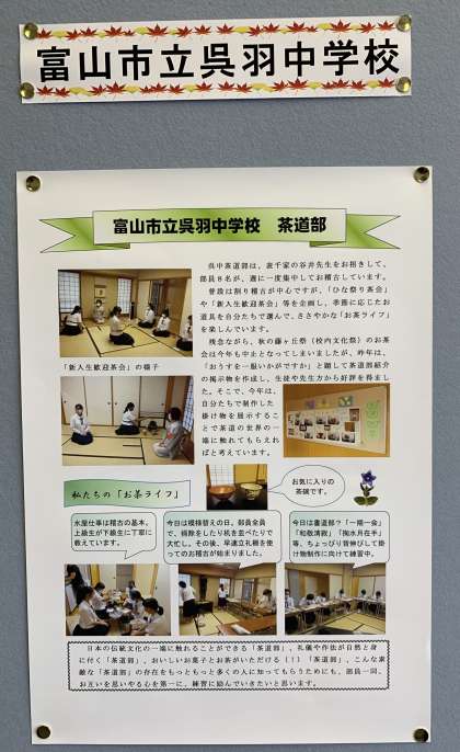 書道部門、特別展示部門(学校紹介新聞)、茶道部門へ作品を出品しています。