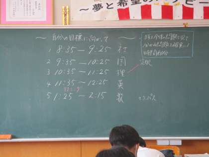 土曜日の藤ヶ丘祭は合唱コンクールの結果で悔しい気持ちや嬉しい気持ち、クラスによって違いはあれど、やりきった、楽しかった、そんな言葉が聞かれました。さて、大きな学校行事がほとんど終わりました。来月からは進路関係の話が今以上に増えてきます。気持ちをしっかり切り替えていきましょう。今日は、1日かけて5教科の実力テストです。前回の実力テストから1ヶ月が経っています。少しずつテスト範囲も広がっています。1回1回のテストで苦手を克服していきましょう。