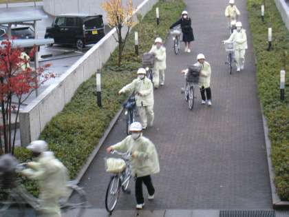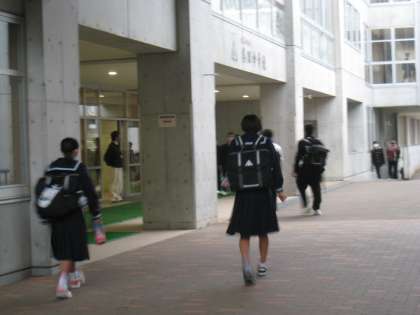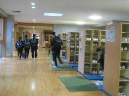 曇天の空模様ですが、生徒たちは元気に挨拶をして登校してきます。