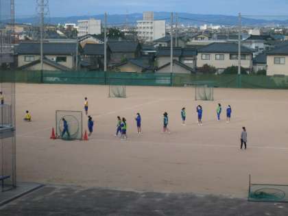 1年の技術では、木材加工に取り組んでいました。また、2年の保健体育では、風が少し吹いていましたが、サッカーをゲーム形式で行っていました。