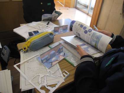 2年の理科では、温帯低気圧3Dペーパークラフトを作っていました。