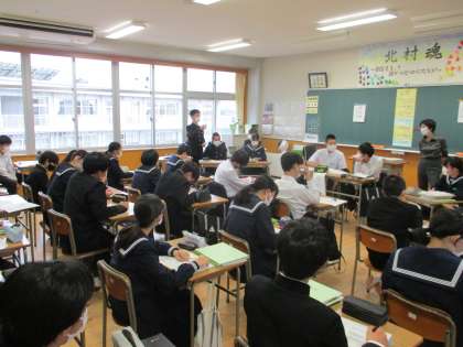本日1限、国語でディベートを行いました。(2−3)班ごとに賛成派と反対派に役割を決め、多角的な視点で物事を考える会となりました。相手の話をよく聞きくこと、相手が納得するよう根拠をもとに伝えることの難しさ、おもしろさを実感しました。