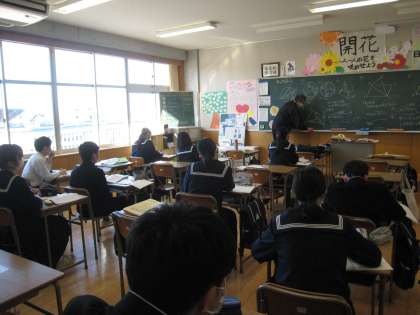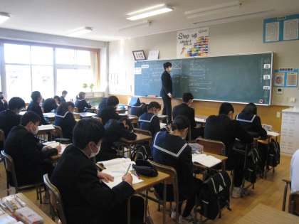 2年の数学では、三角形の合同条件を使った証明問題に取り組んでいました。また、3年の数学では、円周角の定理を使った問題に取り組んでいました。