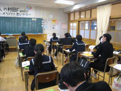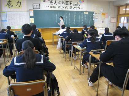 3年の国語では、「温かいスープ」を読んだ後、コミュニケーションに必要なことについて、生徒が意見を出し合い、話し合っていました。