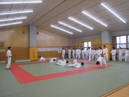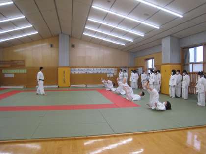 1年の保健体育では、柔道の後ろ受け身や前回り受け身の練習をしていました。