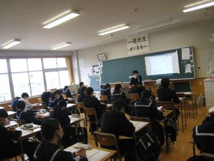 3年の社会でも、先日行われた学年末考査の見直しをしていました。