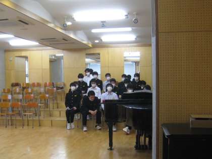 3年の音楽では、合唱曲の男女別練習に取り組んでいました。