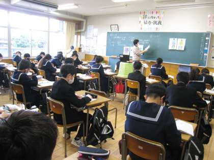 1年の技術家庭では、汚れの種類と洗剤のことを学び、洗濯機で洗濯するときの注意点や工夫について考えていました。