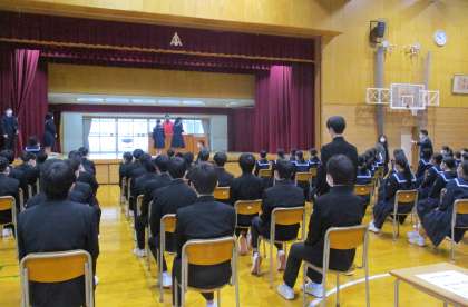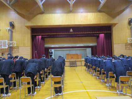 昨日までの2日間、県立高校一般入試お疲れ様でした。今の自分の持てる力を発揮できたでしょうか。また、進路がすでに決まっている人も登校し、教室・学年棟の清掃ありがとうございました。さて、この学年で過ごす時間も残りわずかとなりました。気持ちよく卒業するためにも式練習や歌練習にどのように取り組めばいいのか、今一度よく考えてみましょう。保護者の方への感謝、後輩に思いを託して・・・。限られた練習時間で頑張るぞ!!